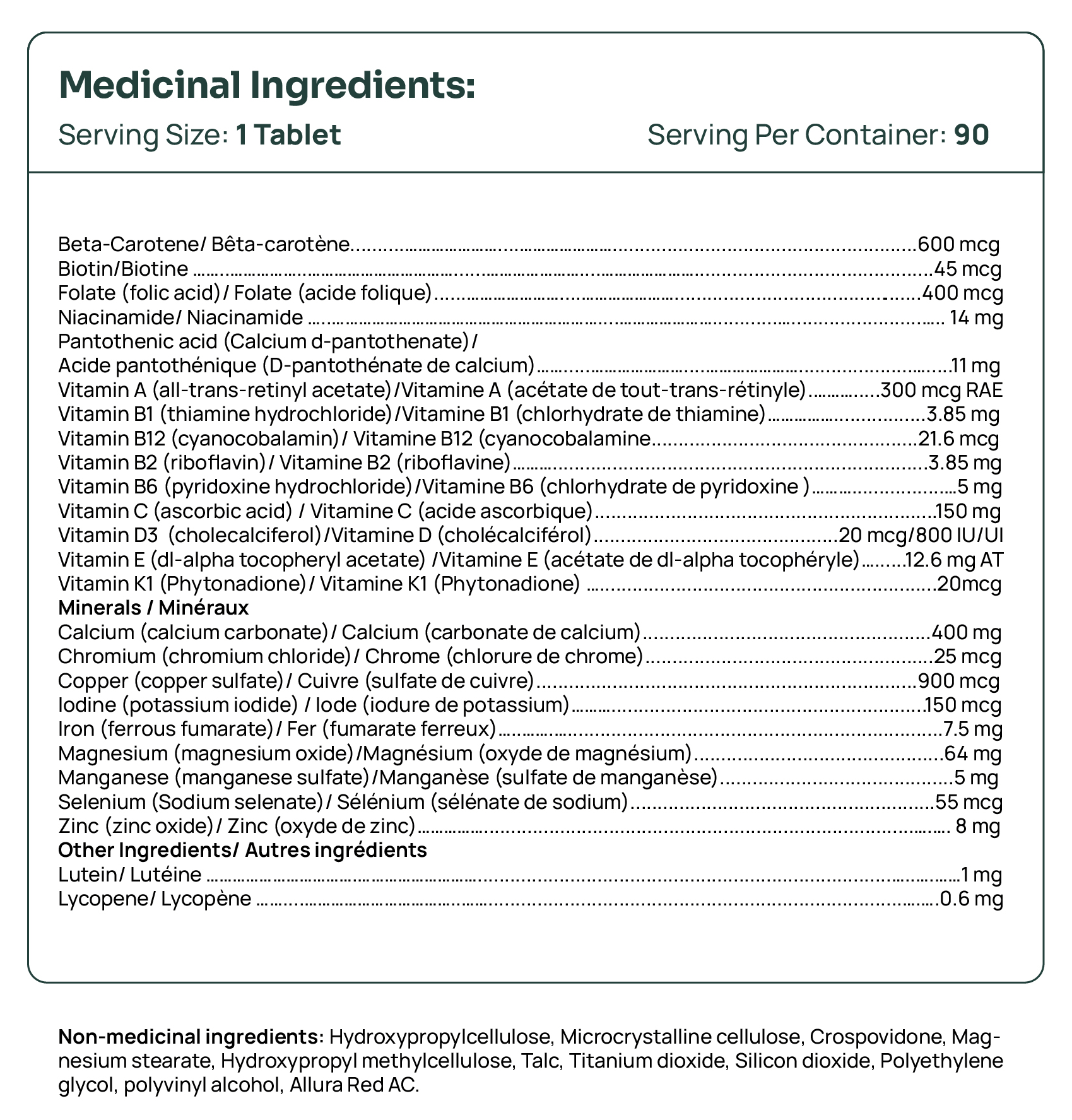 1 tablet 1 time per day. Take with food, a few hours before or after taking other medications or natural health products.